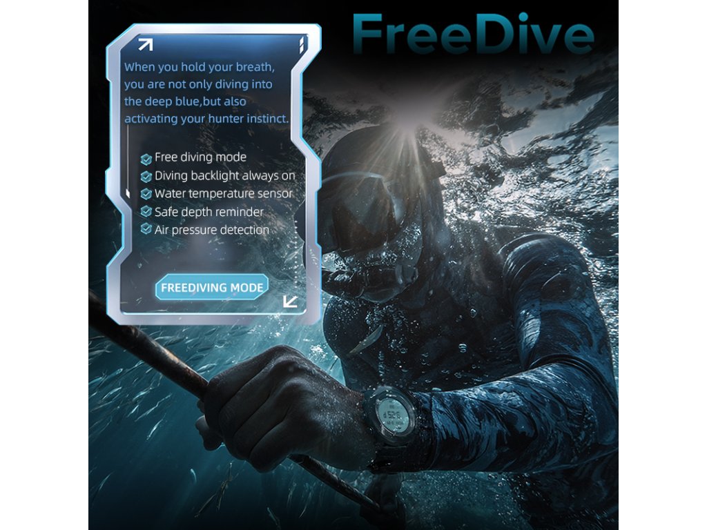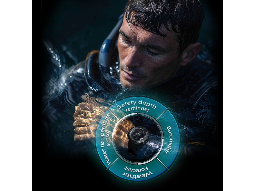Skutečnou předností těchto hodinek je jejich vodotěsnost 10 ATM, díky které jsou vhodné nejen na plavání, ale i pro freediving. Samozřejmostí je ukládání záznamů z ponorů, takže své výkony budete mít vždy po ruce.