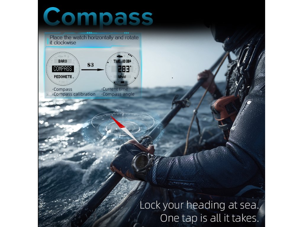 Long-tail hodinky pro freediving se záznamem ponorů sportovní hodinky s krokoměrem a kaloriemi outdoor hodinky s teploměrem a barometrem spolehlivé hodinky pro cestování a dobrodružství hodinky s dlouhou výdrží baterie